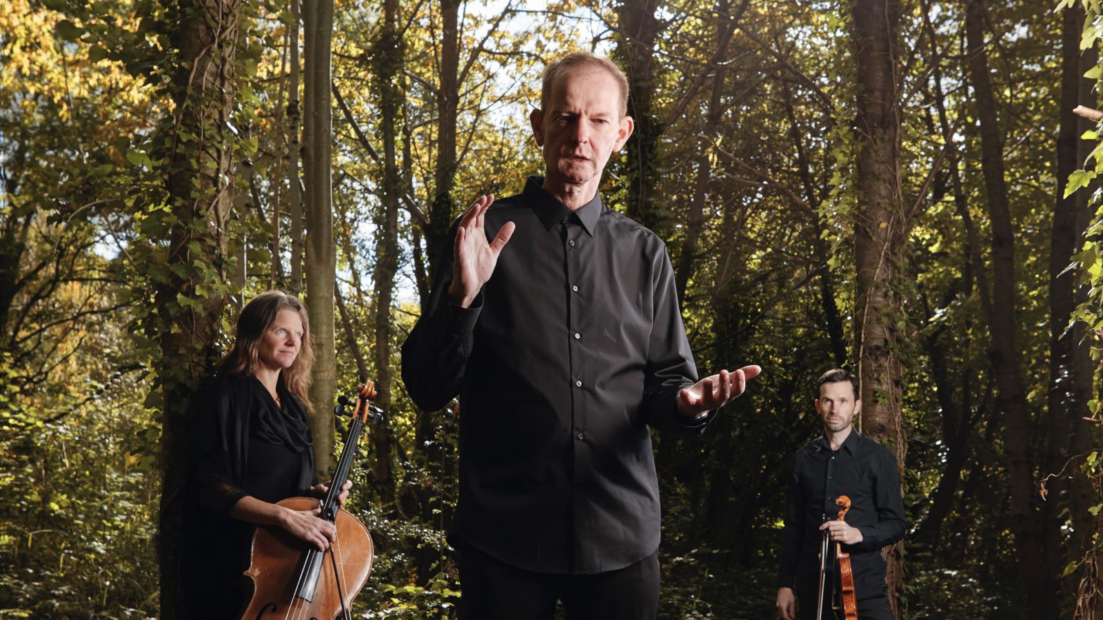 Behind Morden are a violinist (Oliver Wilson-Dickson) and celloist (Sarah Moody), and you know the story is about to get good when they start fiddling with their instruments.