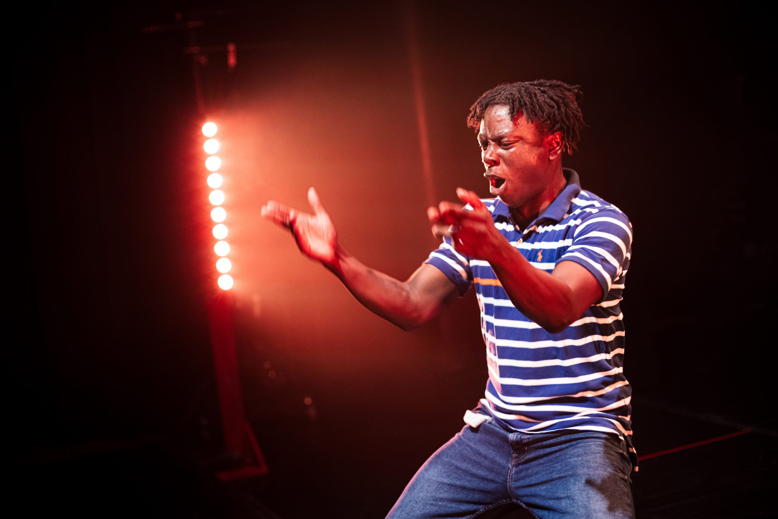 Butler and Aguinaga play numerous parts to perfection, including creepy uncles, judgemental dads, pissed up footy fans off to Spoons, and, most sinister of all, bad boy bullies wearing identical track suits from JD Sports. All the while, Ayofe drives the narrative along with poetry, charm, and a charging raw energy.