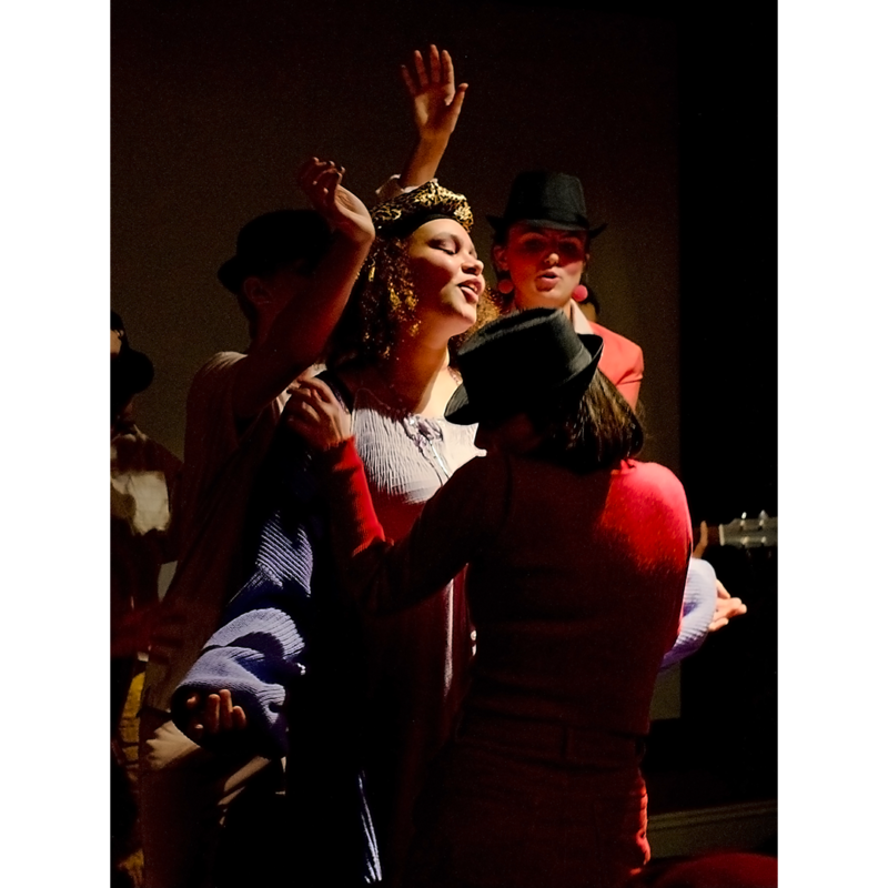 The scene changes are seamless and unforced. The cast, decked out in vibrant costumes, pick instruments and burst into song at the drop of a hat, much to the delight of the audience.