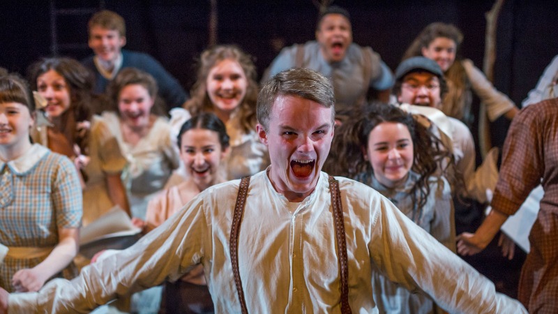 Having the latter on board in this show seems to mark a significant turning point in the quality and impact of YC work, and an upping of their game in terms of theatricality and production values. This show is engaging, dynamic, content-rich and very slick. Gregan moves her young cast around the beautifully spare set with a deft fluidity, without the use of any fussy props or tricks. The narrative is punctuated by strikingly choreographed and stylised ensemble moments, the quality of which makes it hard to believe that this is a young, amateur cast at work.