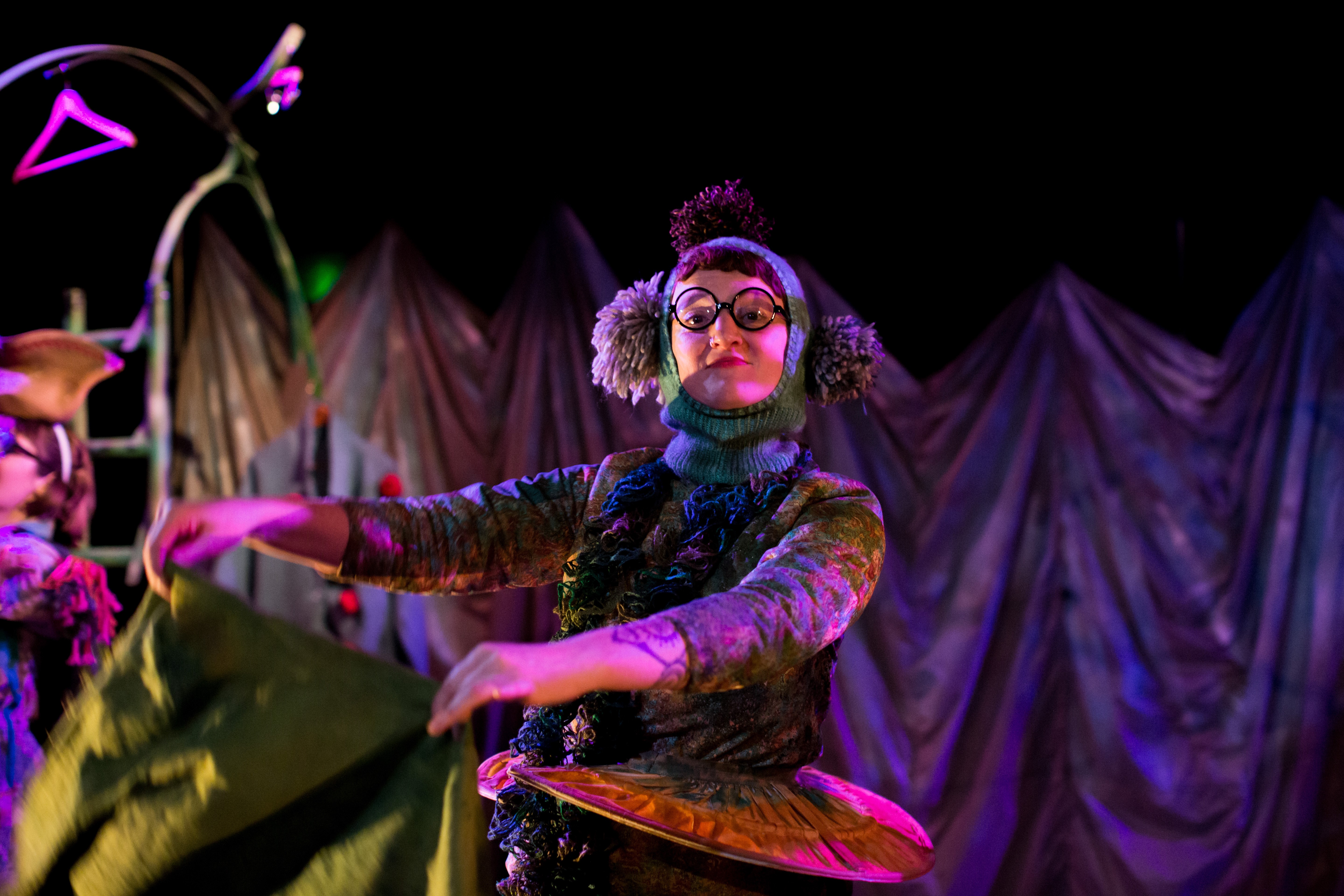 This unlikely friendship between a giant and a girl, both of whom feel like they ‘don’t quite fit in’, is imaginatively retold with simplicity and care by Rosamund Hine and Tessa Bide. The clarity of their storytelling as they breathe life into each of the characters is a delight to watch. The space is a constant buzz of magic with their energy – and the physical comedy is a hit too, as chuckles ripple across the audience throughout.