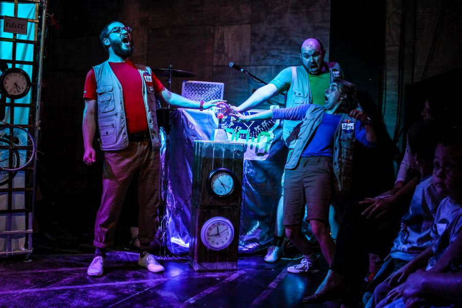 Audience interaction comes in many forms, aided by some really snazzy voice-altering sound effects and a venue that’s just cosy enough that everyone gets to be involved. Giving live microphones to nine-year-olds introduces reliable moments of dramatic bite into this wholesome family performance, including pronouncements that the present is “depressing” or that the future will involve “robot nuclear war.” Interventions are expertly handled, and songs, games and dances arrive seamlessly in way that feels like the audience is playing with the cast, not just watching a performance.