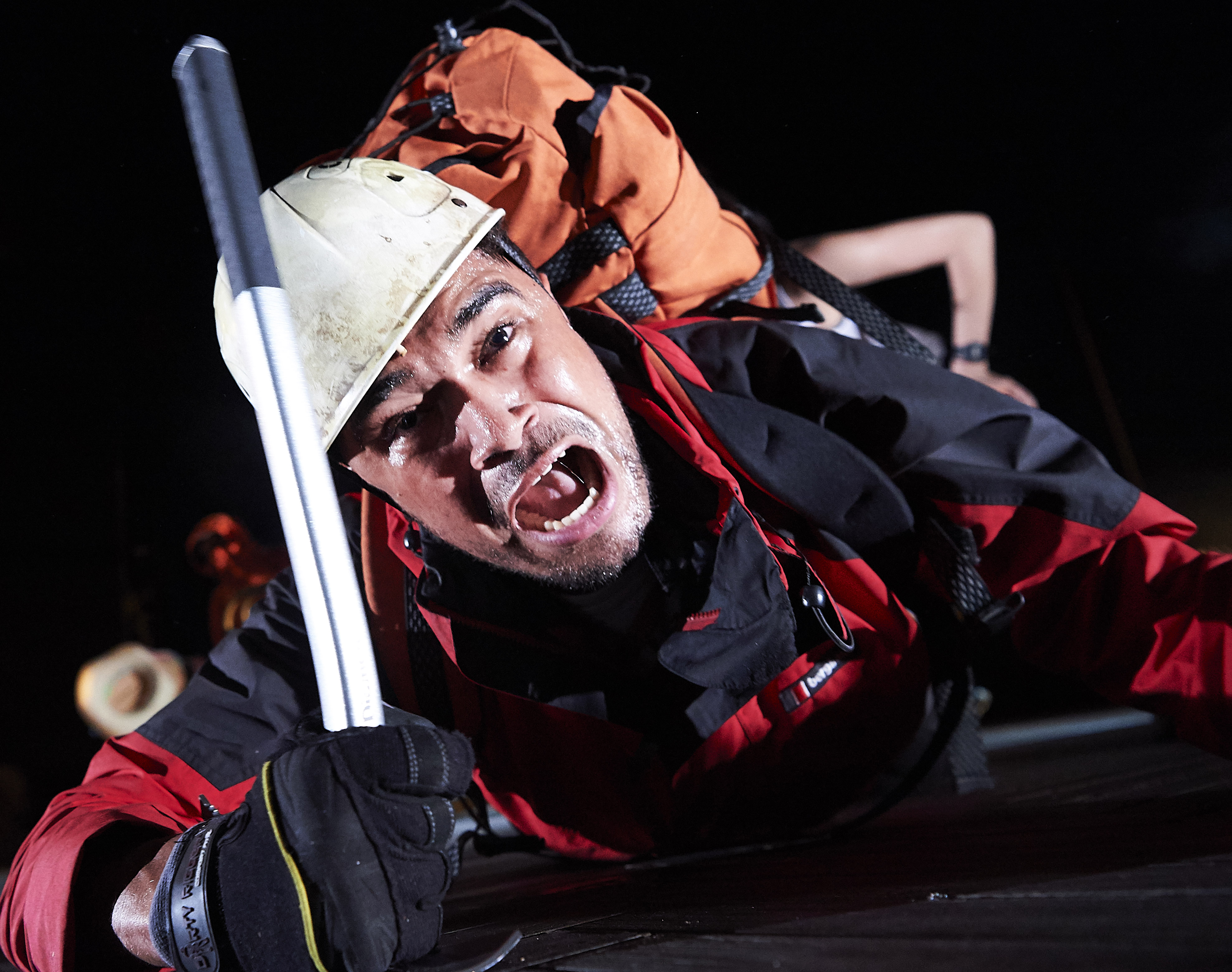 The action opens with a wake, a bottle of Jameson and a few bars of Joy Division, as Joe’s sister Sarah (Fiona Hampton), his climbing partner Simon (Edward Hayter) and friend Richard (Patrick McNamee) unpack, literally and metaphorically, what happened between base camp and the summit.