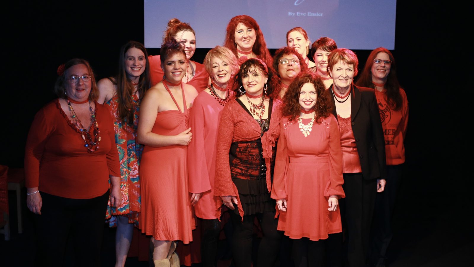 With some slightly dubious lip-syncing to a feelgood soundtrack, the all-female cast, clad in shades of red, gradually fill the tiny stage of the Alma Tavern Theatre, which is minimally set with stools and a projected image as the backdrop.