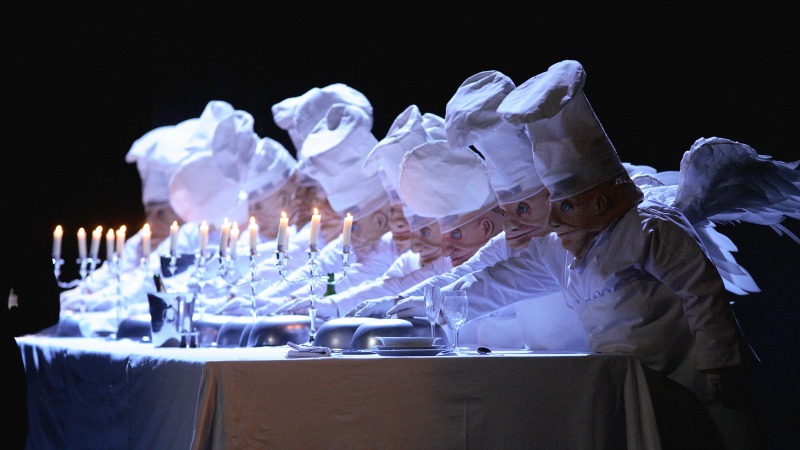 Piggy-wiggy angels bearing silver salvers to a fish maître d’ who ladles the soup: director Richard Jones’ imagining of the dream sequence at the end of Act 2 of Humperdinck’s Hansel and Gretel has to be one of the most seductive bits of fantasy ever realised on an operatic stage.