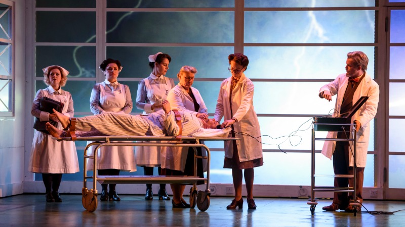 Actually, in Harry Fehr’s cunningly-contrived staging, ‘magicked’ isn’t quite right. The action has been relocated to an early-1940s psychiatric hospital in which ace airman Orlando, a post-traumatic-stress patient, is being treated by head shrink Zoroastra. When Angelica (an angel by name, if not by nature) falls for recovering invalid Medoro, Orlando is emotionally torn to pieces – and nurse Dorinda isn’t too happy either having harboured loving thoughts over the bed pans.