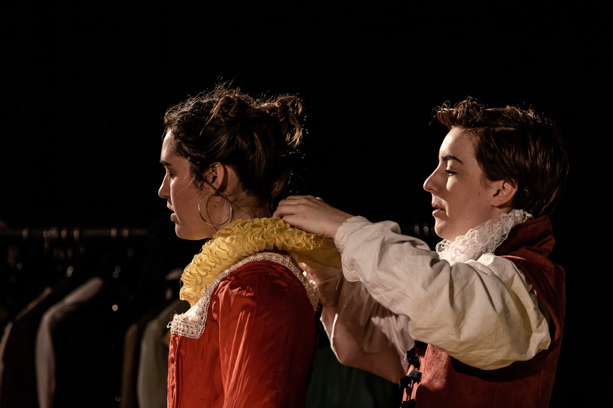 They are on a beach and, because “time is elastic in the theatre”, they start off all ruff-and-bustle in Elizabethan times and end up in the here are now, by way of the Regency and Edwardian periods. Oscar (Annabel Baldwin) has just completed his first year of uni, while Nell (Alice Lamb) is on a gap year (“if you were a rich bitch in Elizabethan England your whole life was a gap yaar”.)