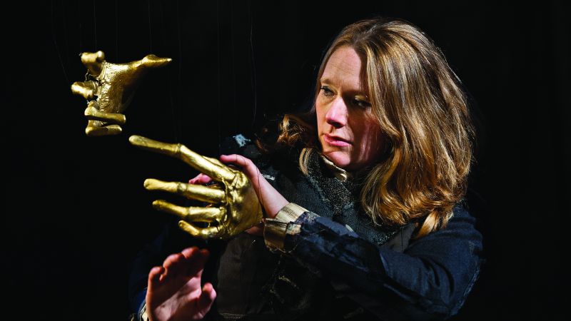 They manipulate the puppets and interact with them – one malevolent scissor-wielding creature cuts a puppeteer’s finger. In another, a puppeteer takes on the appearance of a caterpillar-like man and dances with him.