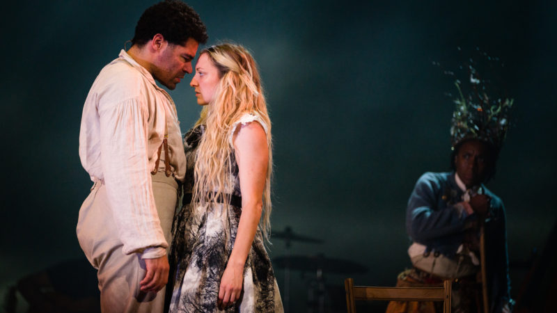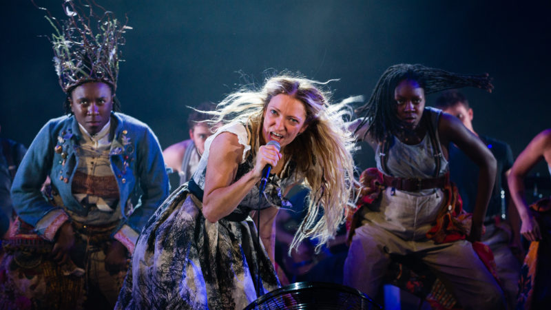 Lucy McCormick as Cathy, Ash Hunter as Heathcliff and Nandi Bhebhe as The Leader of Moor – photo: Steve Tanner
