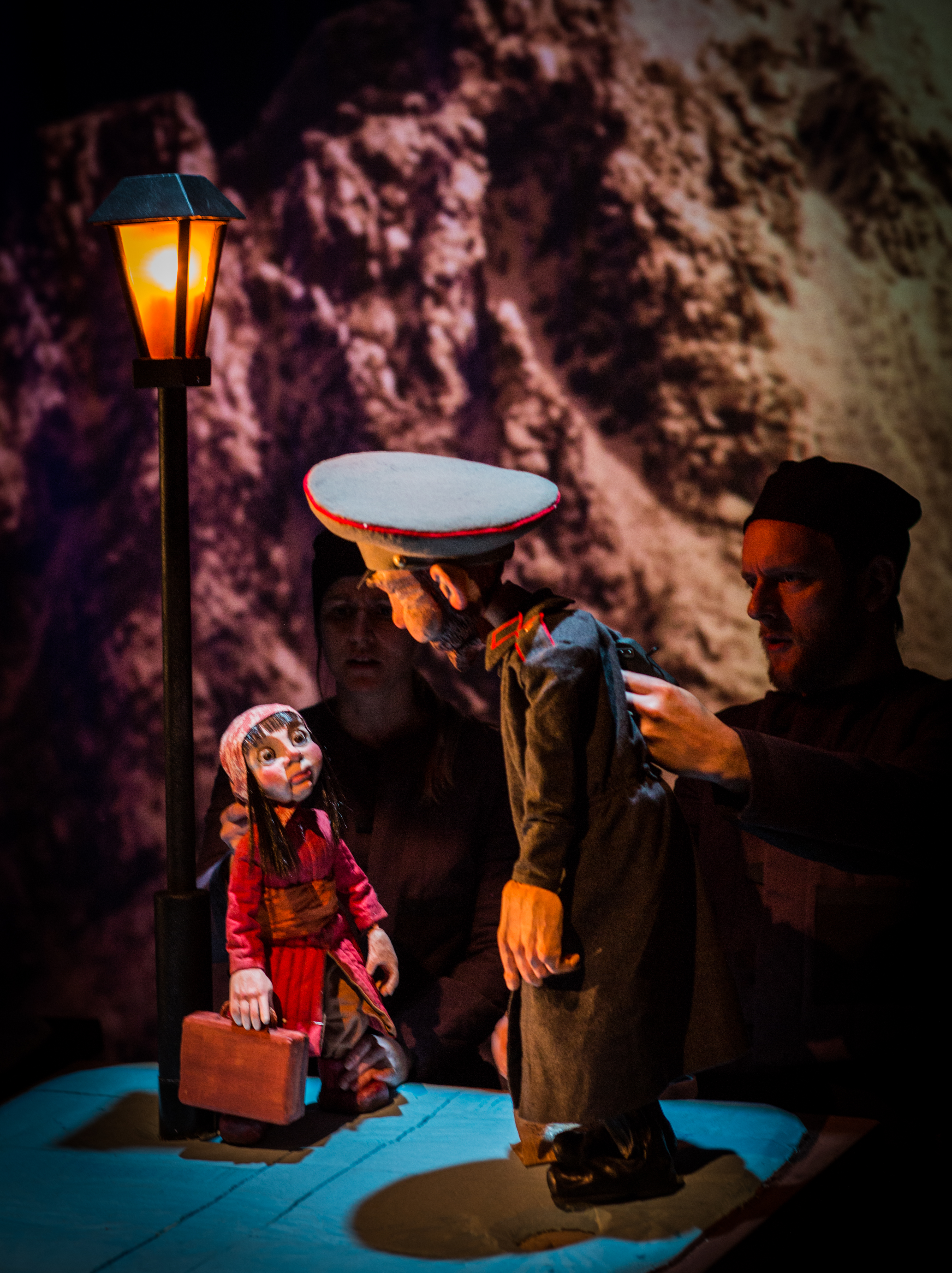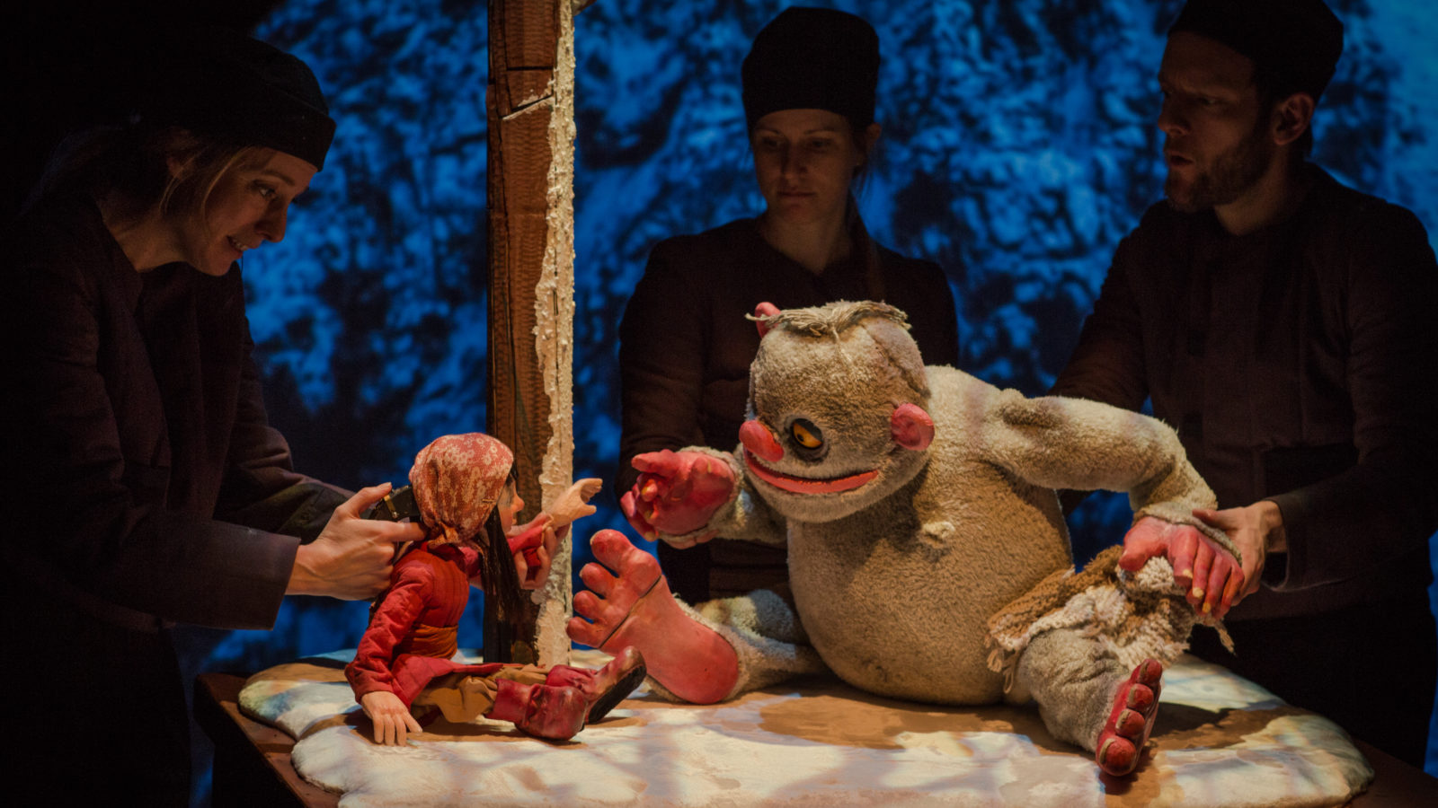 There’s also some brilliant use of scale. Some way into the show Yana goes off on the adventure that initially appears to be her undoing, but which proves to win her both the friendship she craves and, finally, acceptance – no, admiration – from the whole village. And this journey is beautifully rendered using different-sized puppets and areas of set (including a stunning, snow-carpeted Nordic village in miniature), allowing us to move in a second from the village, where despairing cries for Yana echo around the snowy streets, straight into the deep dark woods where our heroine meets her unexpected companion.