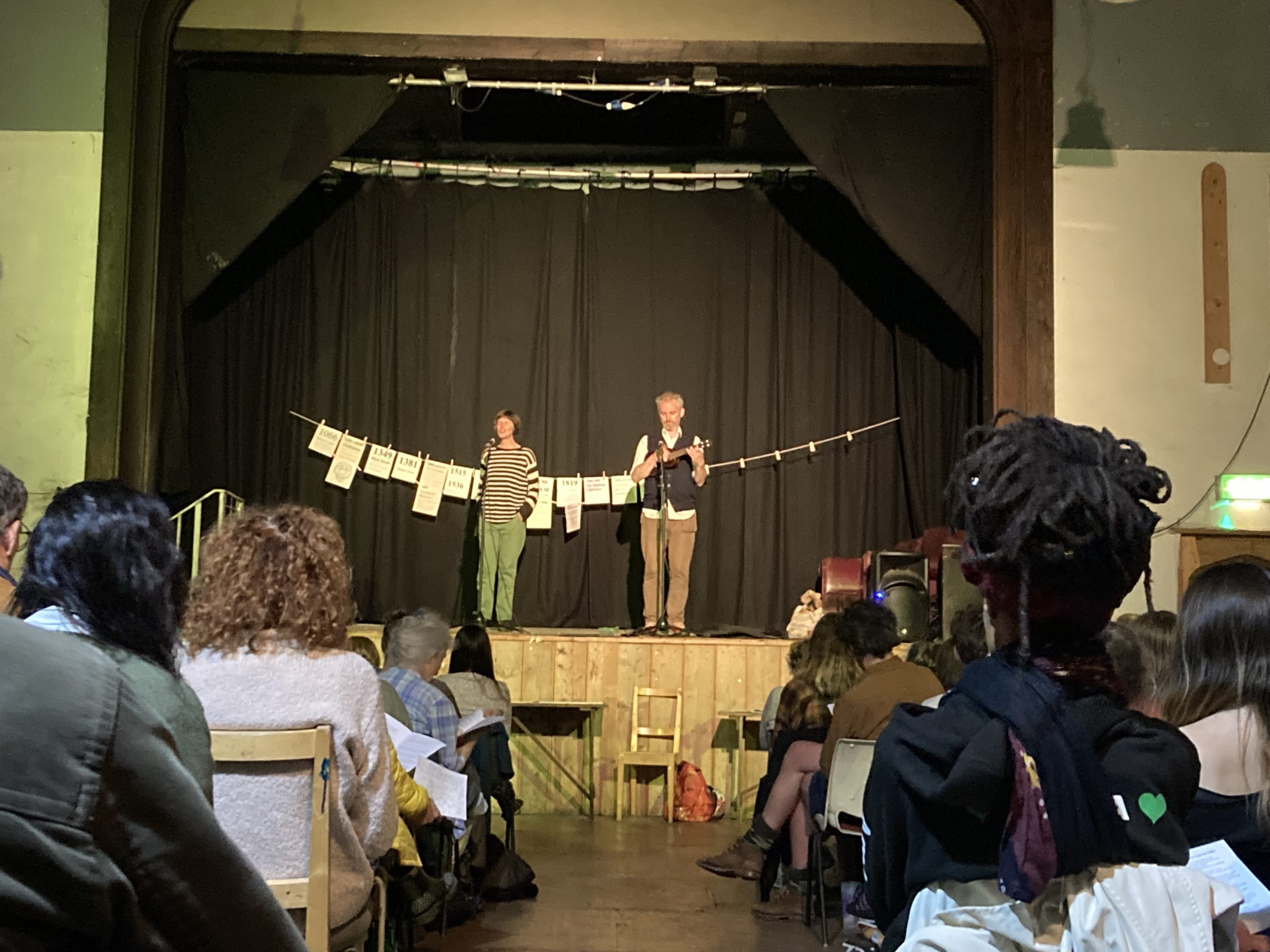 Part TED Talk, part poetry slam, part folk club sing-along, the night unfolded as a series of historical lectures, interspersed with poetry and group singing.