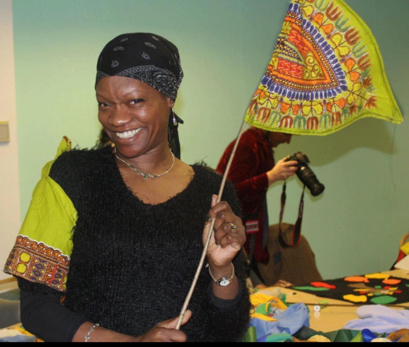 Carol Sherman at the first WOW flag-making workshop in 2013 – photo: Diverse Artists Network