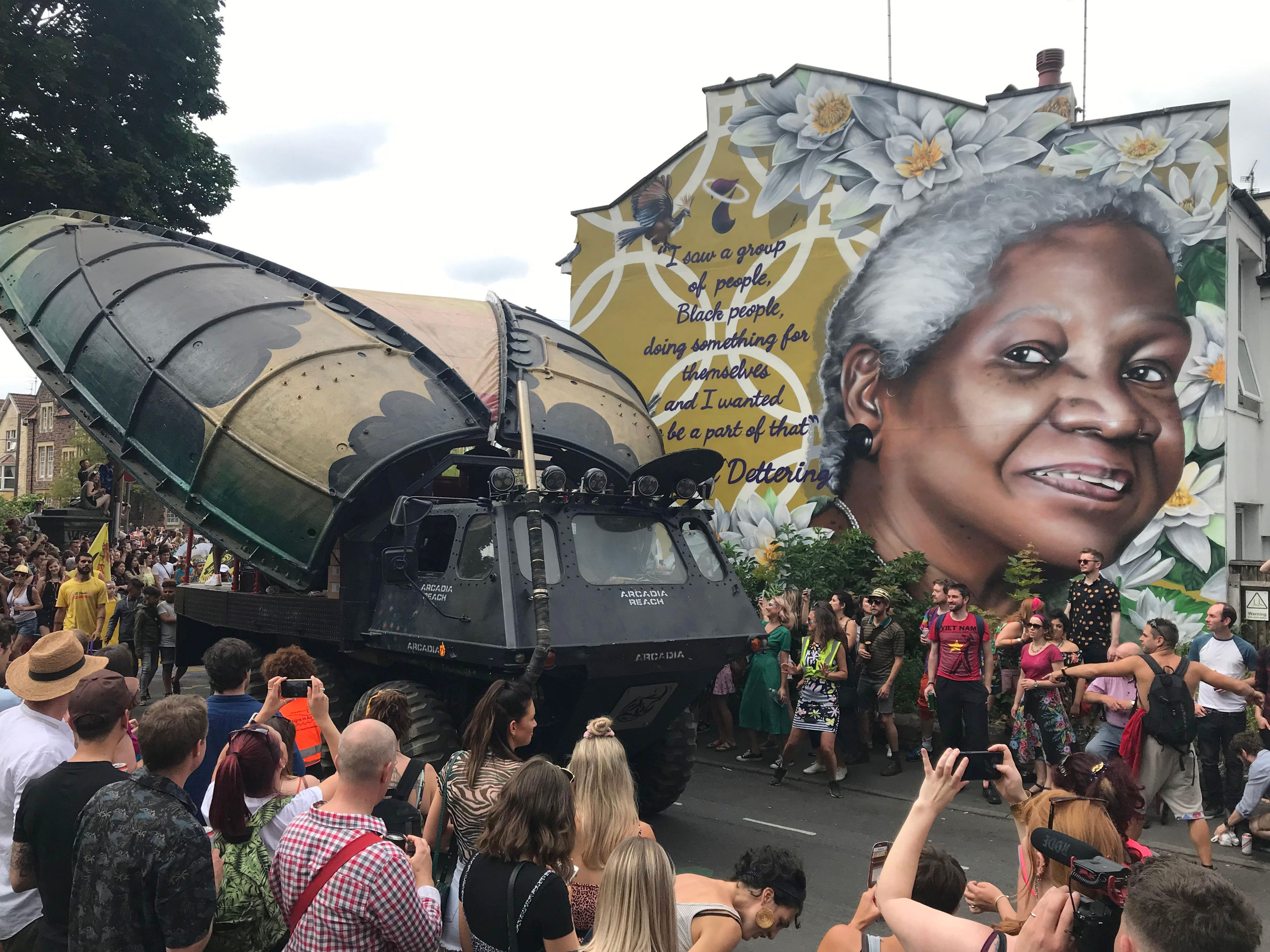 This year’s theme of ‘Our Journey’ paid homage to the Windrush generation, with community elders celebrated with banners, placards and their own vintage green Bristol bus.