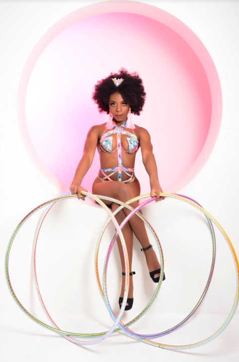 The hula hooping burlesque star takes the stage with her circus skills