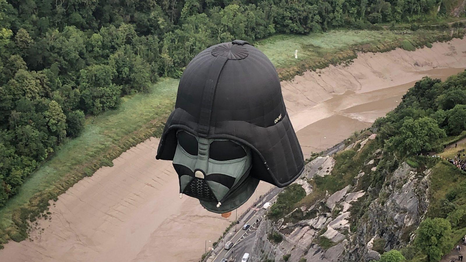 To the sound of The Imperial March, one of the most eagerly anticipated hot air balloons to appear at Bristol Balloon Fiesta for many years finally took to the skies over its home city.