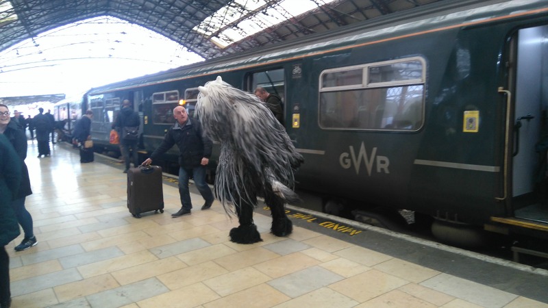 There, Beastie, a strange seven-foot creature – a sort of giant twisted Moomin – frolicked, accosted strangers, attempted to get on a train, and generally perplexed and delighted most of the mid-morning passengers.