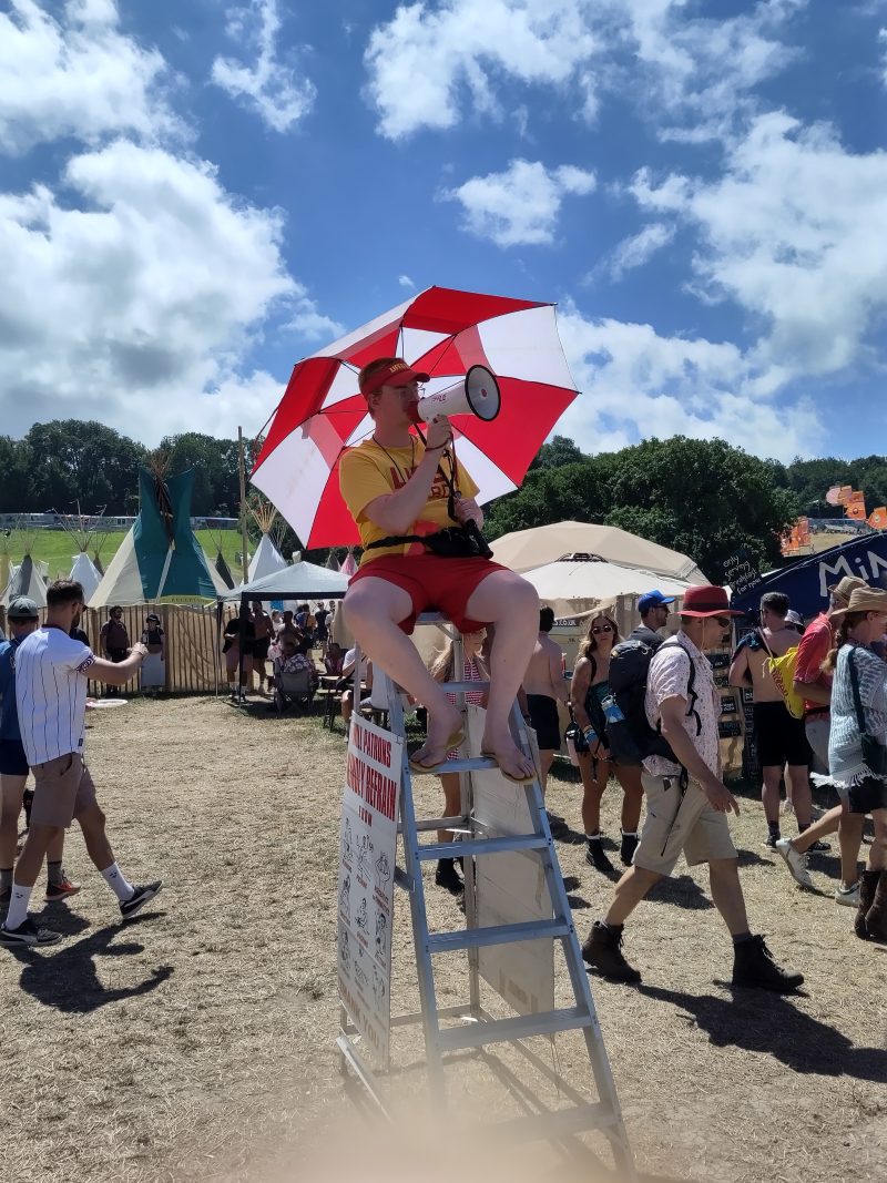 The Tiny Tea Tent is the best place to sit and watch the world, with soothing herbal in hand. On a sofa I meet Greg who spends 45 minutes explaining why Ezra Collective (who later put on a killer show to a huge crowd on the Other Stage) is “the best band this country has produced since Idles”, how they are same same but different: “it’s joy through joy or joy through the catharsis of beating yourself up”. Simple.