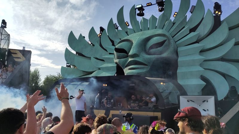 We enter the Temple for O.B.F. just as the first strident notes of Dubkasm’s Victory hit the air. The sight of an amphitheatre of people with arms aloft, singing along to Digistep’s iconic (sorry Ed) sax line sets the heart ablaze: this Bristol anthem is the best welcome to the weekend we could have hoped for, an exquisite festival moment.