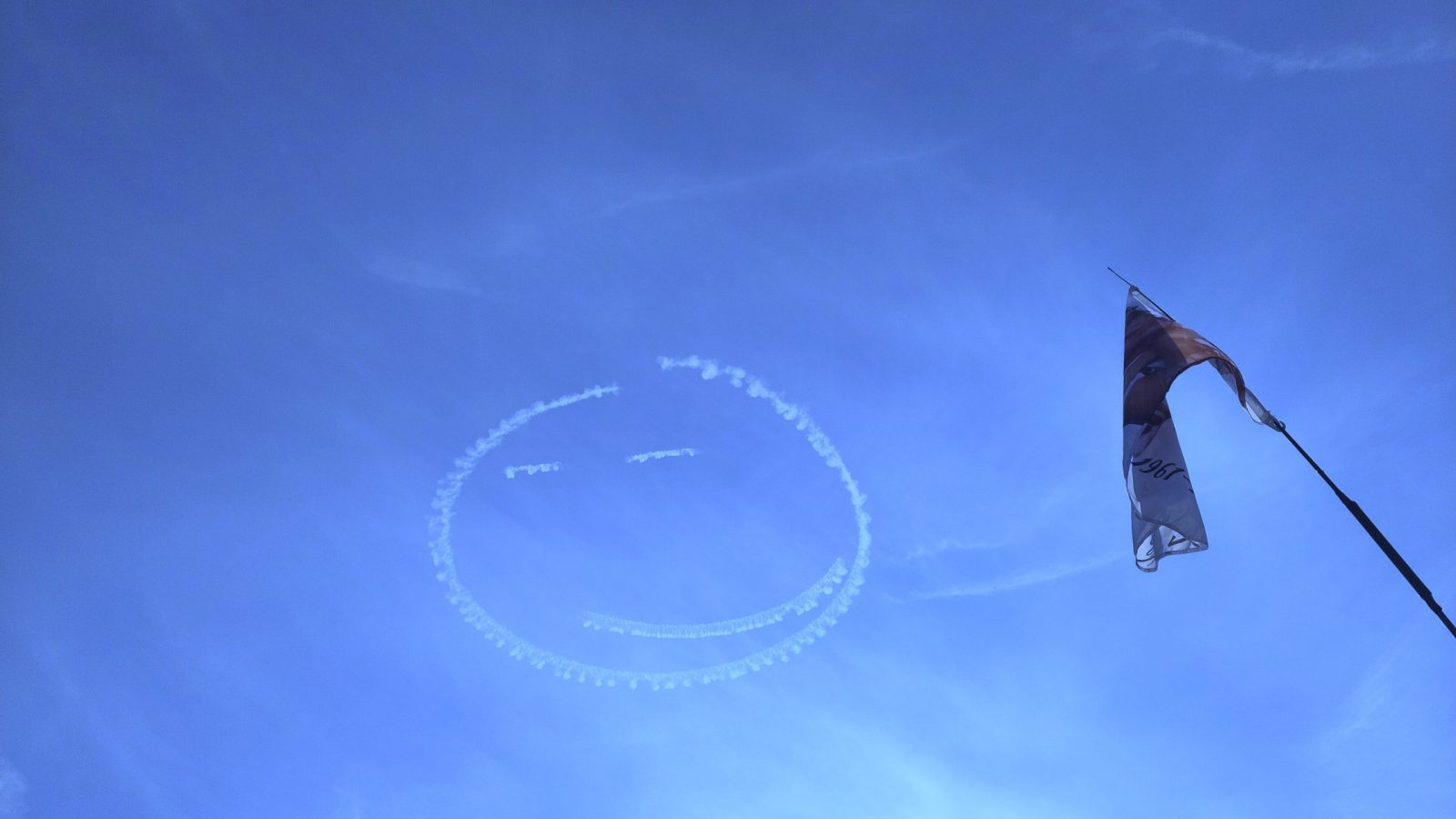 Anton goes as far as to crack a joke – a typically down in the mouth wisecrack about how it’s sad all the trees are being cut down because soon there won’t be any more wooden tambourines. A stunt plane draws a love heart and wonky smiley face in the electric blue sky, and we feel seen.
