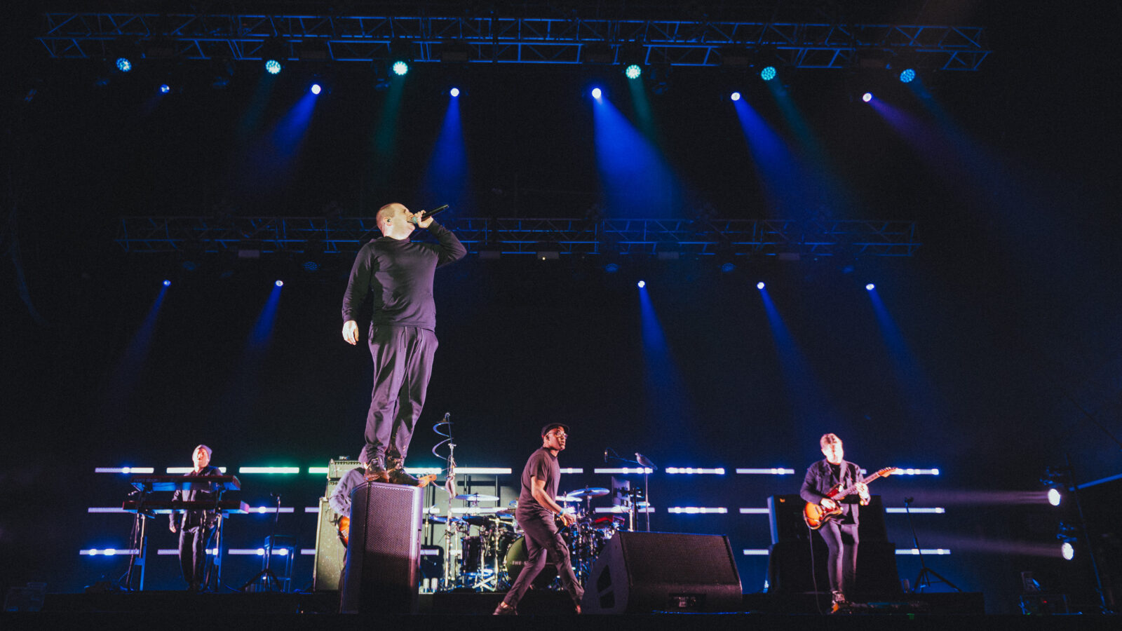 Emerging alongside his live band, Skinner began the set with a rendition of Turn the Page. Originally released in 2002, the track has been reimagined this year by electronic duo Overmono to winningly combine Skinner’s tight wordplay with an uncompromising bassline.