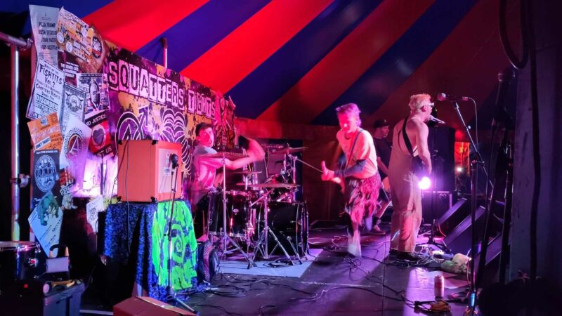 Over my ten years or so of touring, there’s been some change for the better but bigger and more mainstream events remain challenging for the eco-minded. Walking past cheap chicken nugget stalls, wading through piles of trash or driving home through fields of discarded tents are common and confronting experiences.