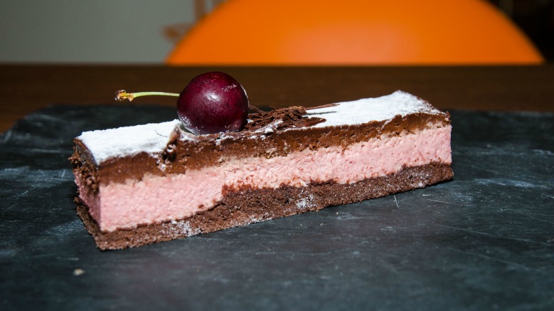 A Black Forest gateau is the pick of the bunch today, made with layers of chocolate Genoese sponge, Belgian chocolate mousse and morello cherry bavarois.
