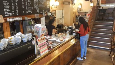 It’s only been open for a few days but on a recent Thursday lunchtime, the new venture is already doing a steady trade. A clientele of mostly students and office workers are sat contentedly at tables or perched at the large wooden bench in the centre of the room, working their way through lattes and wholesome plates of food.