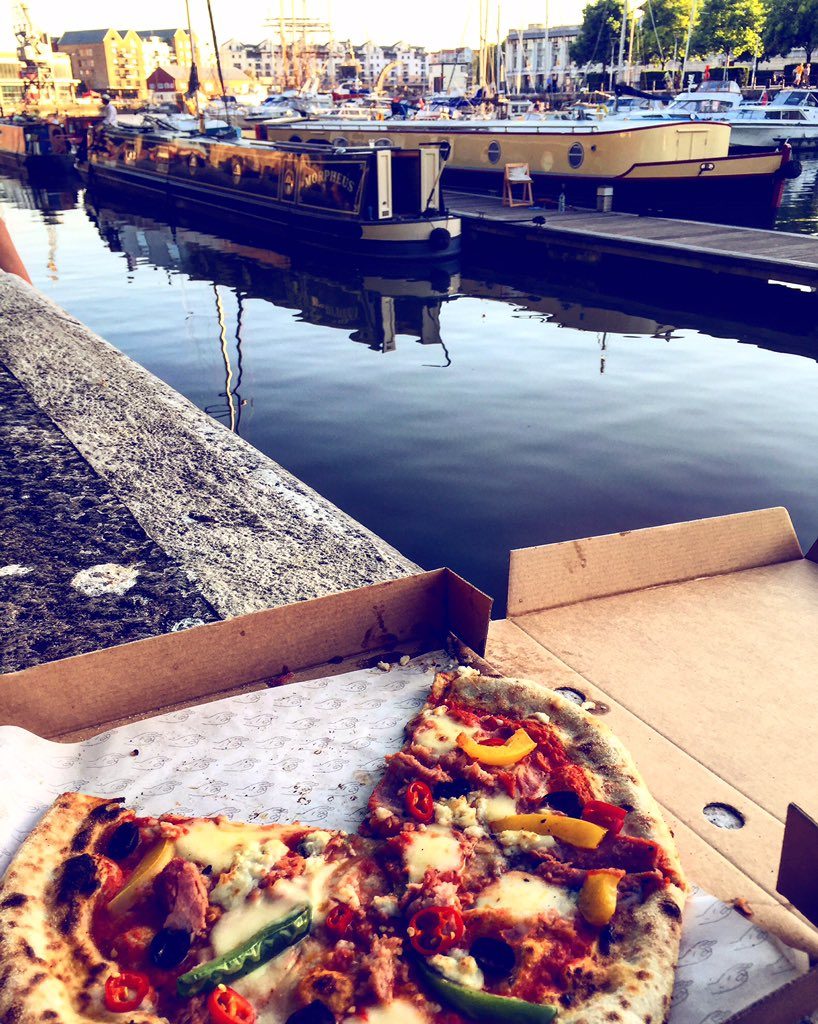 “Pizza from Pizzarova and wine from Corks at Cargo enjoyed on Bristol’s Harbourside (original right?!)”