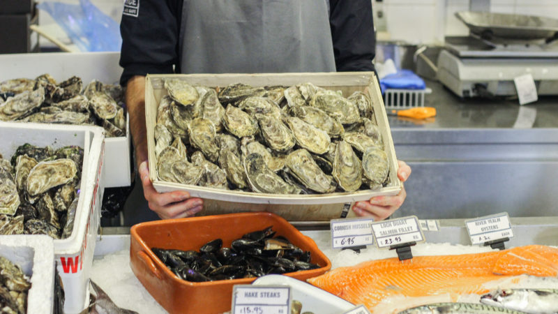 Sitting at the bar at the restaurant and shop next door to St Nick’s Market, Joe turns to chat with a delivery driver who has just driven up from Cornwall with a delivery of 120 fresh oysters. “That’s going above and beyond!” Joe laughs.