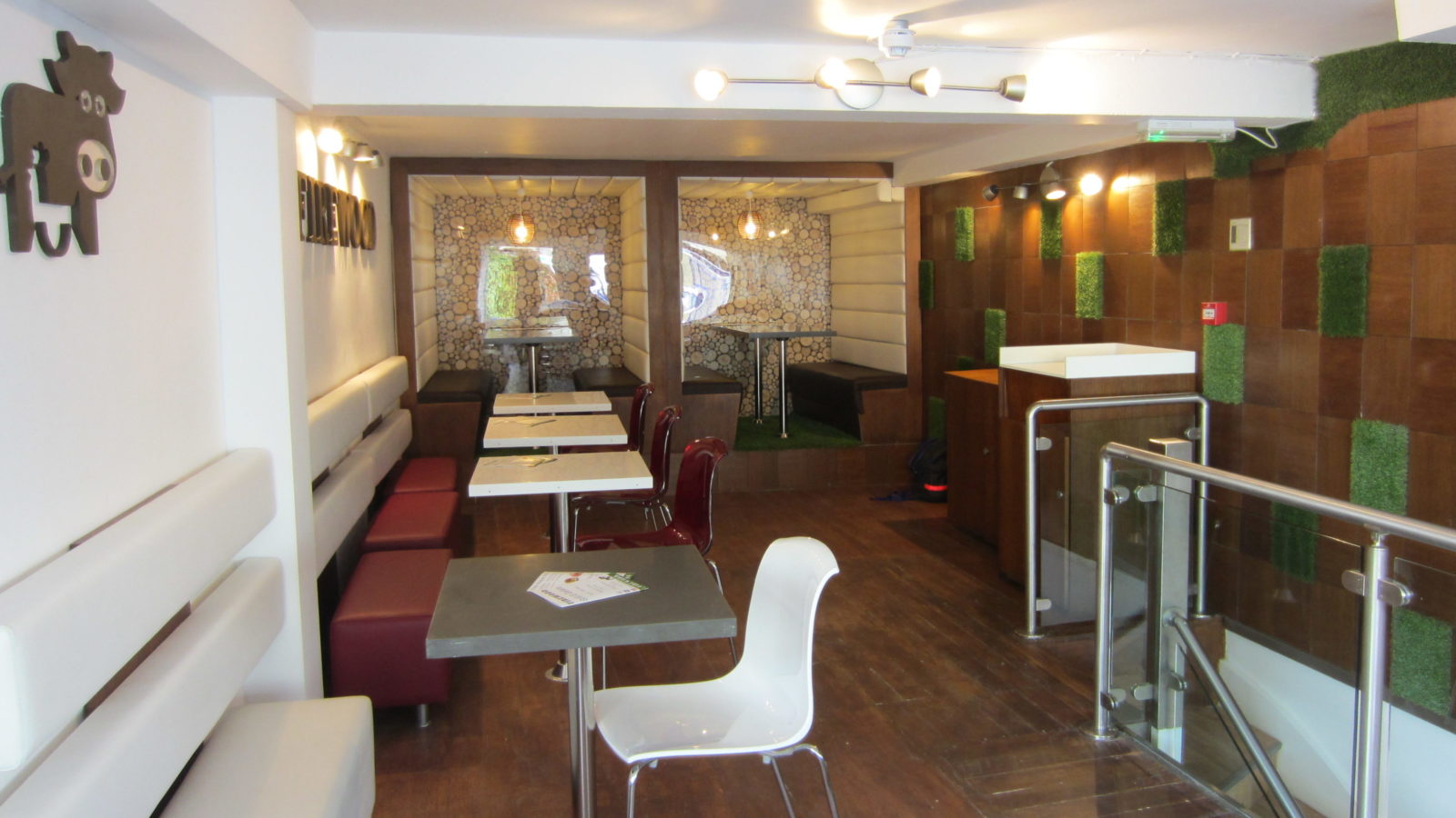 From the distinctive cow logo, to the faux grass coating the interior walls, this is a business that has picked a theme and run with it, but the overall effect is bright, cheerful and quirky and I certainly couldn’t fault the friendly smile I was greeted with.