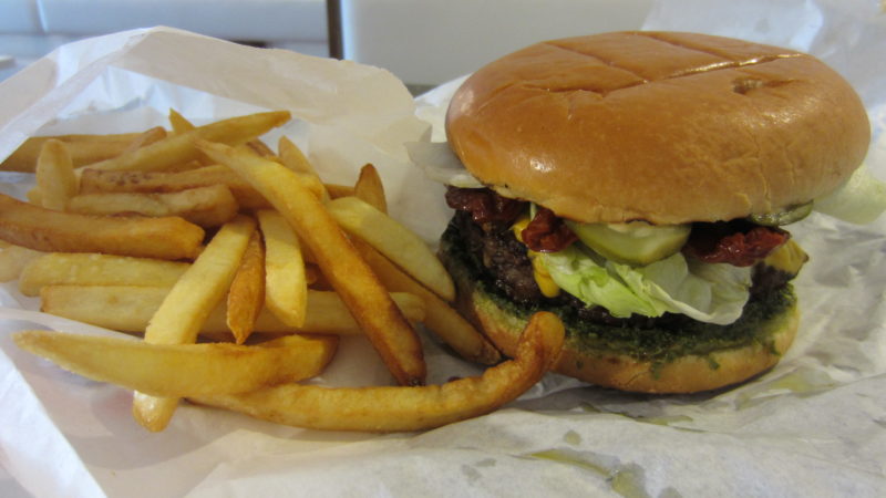 The overall effect was really rather sickly and while I must take some of the blame for my poor choice, in hindsight I have to question whether it is really wise to include sun dried tomatoes and pesto in addition to all the usual burger trimmings.