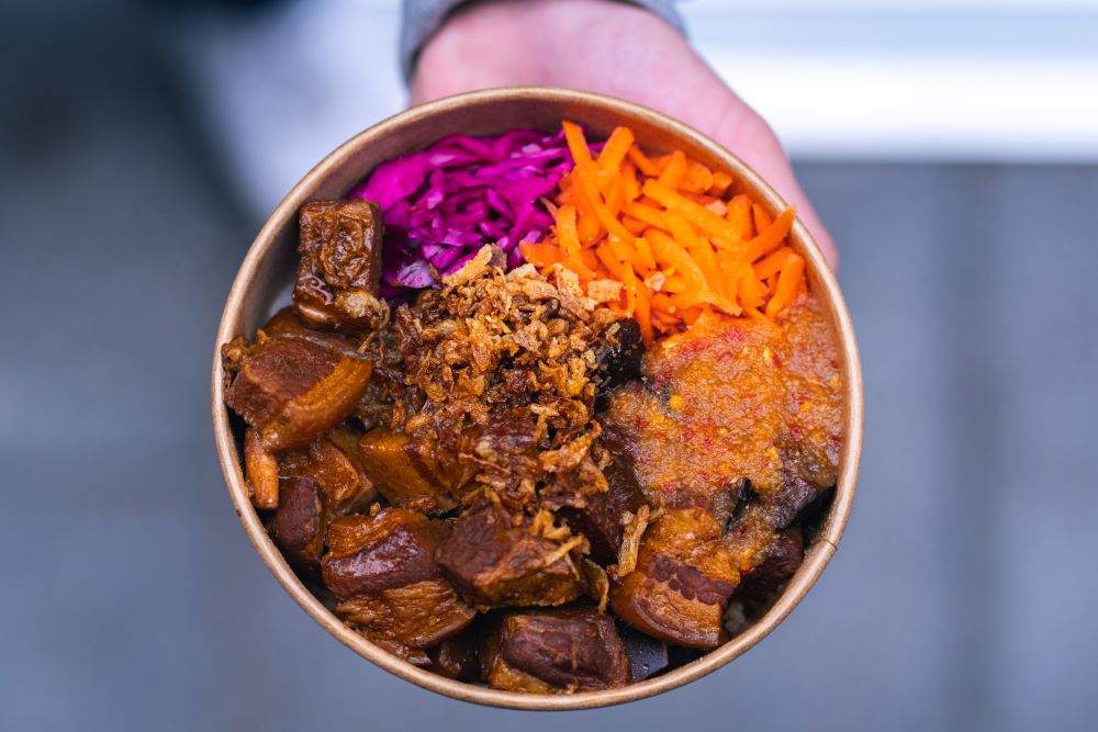 Since Kit’s first market in 2019, Fat Rice has become one of Bristol’s most popular street food stalls, serving “Malaysian comfort food” of braised pork belly, beef rendang and kunyit chicken.
