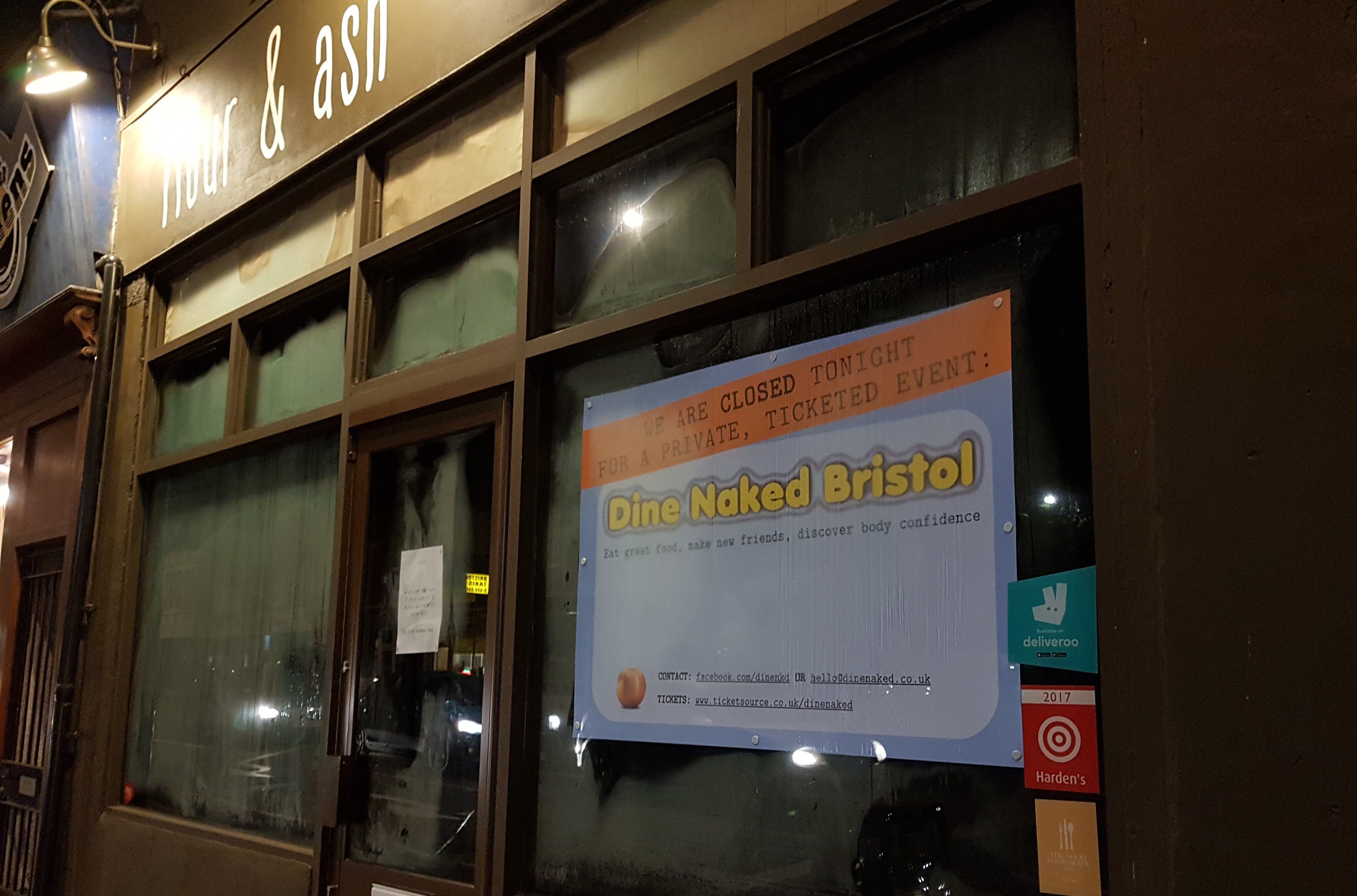 Tentatively, I crept inside Flour & Ash for Bristol’s inaugural Dine Naked event to be met by a room filled predominantly with men, sipping from champagne flutes and making polite small talk.