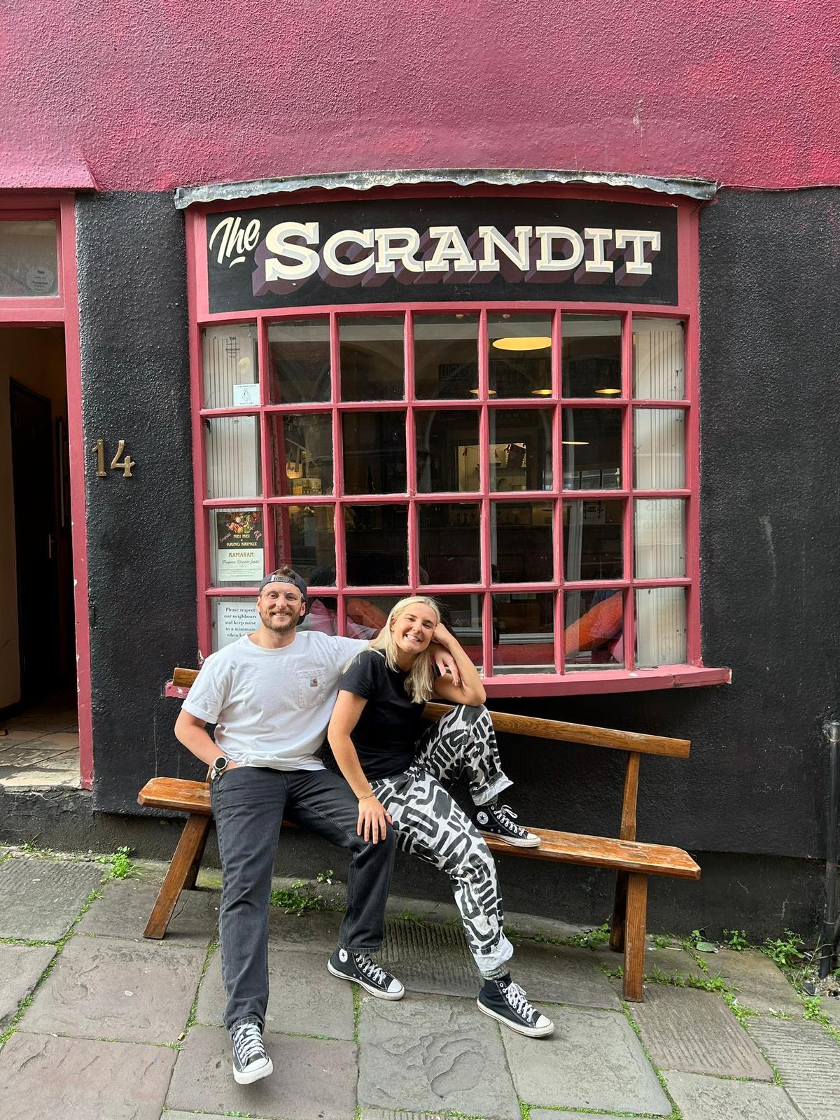 Issy Cox and her partner, Mitch, outside the Scrandit – photo: Issy Cox