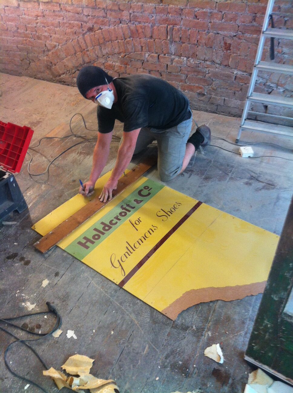 A sign for Holdcroft & Co shoe shop was discovered in the window opening onto the passageway between Small Street and Broad Street – photo: Chris Chubb