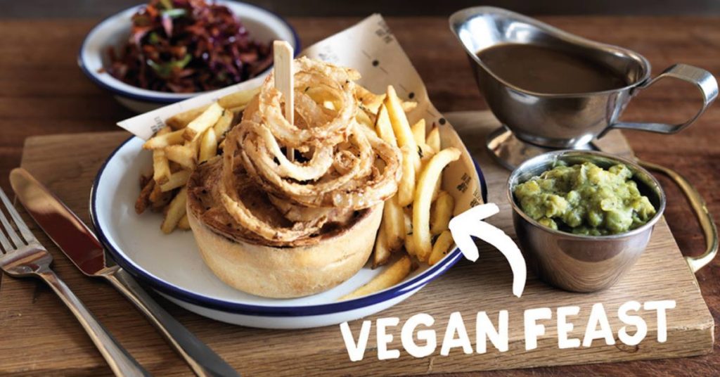 “Pieminister do a whole vegan range. There’s 2 vegan pies and I like to have them with the cauliflower gosh loaded fries (fried cauliflower, curry sauce and pickles). So so good!”