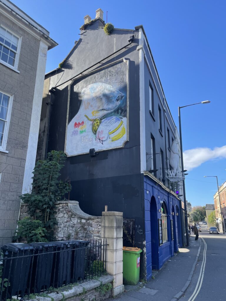 The White Bear’s ursine mascot stands guard outside the pub at the top of St Michael’s Hill – photo: Martin Booth
