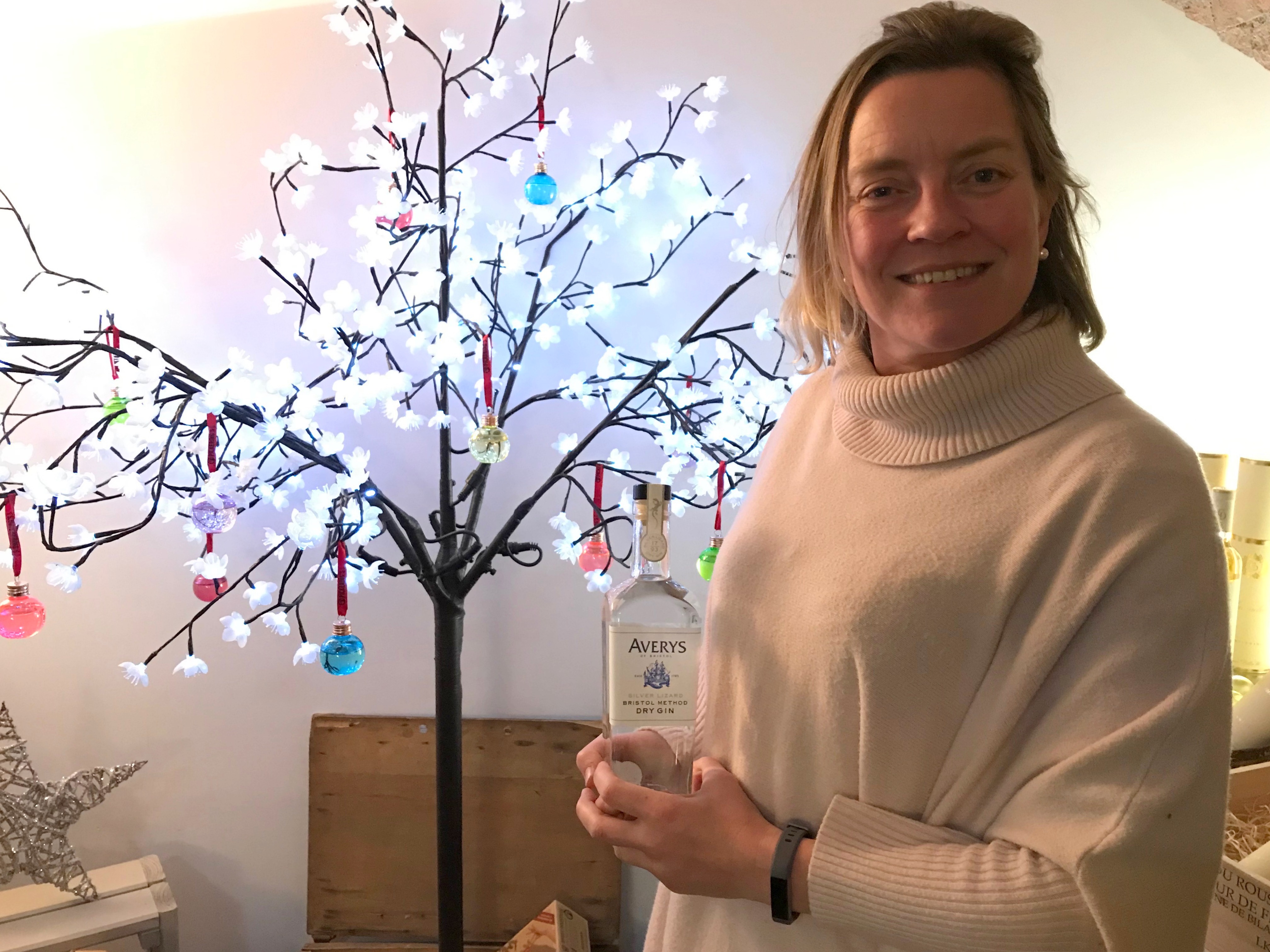 Mimi Avery with one of the 1,320 bottles of Averys Silver Lizard gin, on sale for £35
