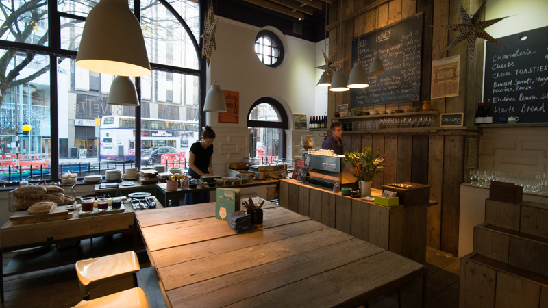 Wine here is biodynamic and organic, many made by young producers in France, and served by the glass or bottle, accompanied by some splendid bread, cheese and charcuterie,