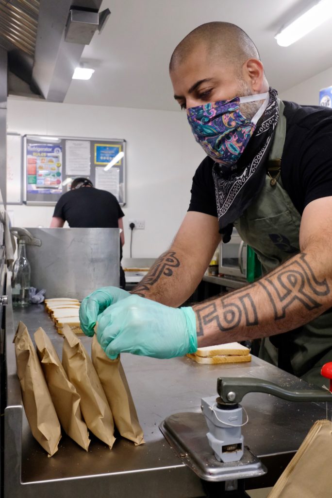 Dom Borel preparing a meal for Caring in Bristol’s Cheers Drive initiative during the pandemic – photo: James Koch