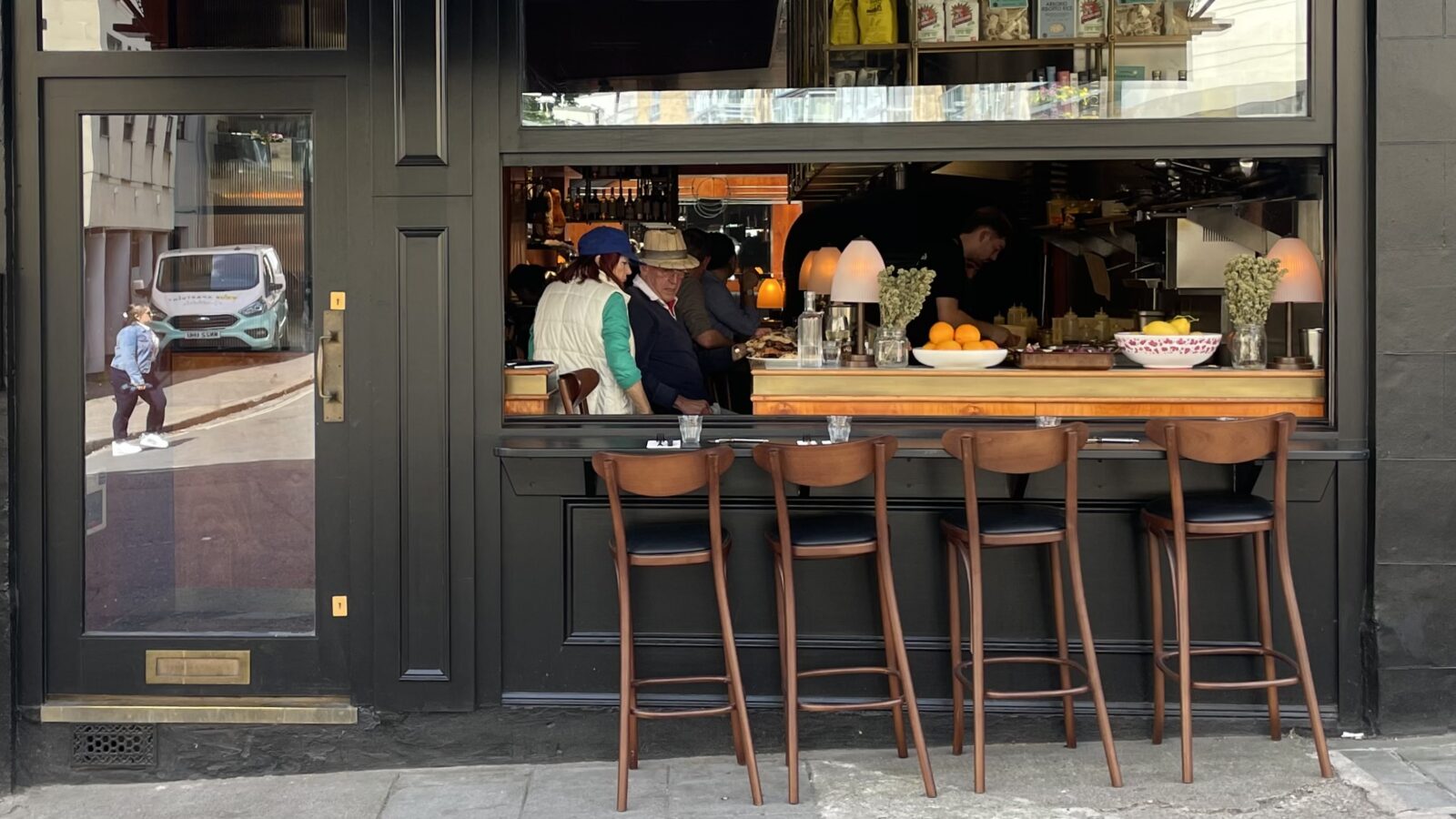 But now the restaurant is back open following a major refurbishment, with tall chairs positioned on the Regent Street pavement allowing guests an unusual inside-outside dining experience.