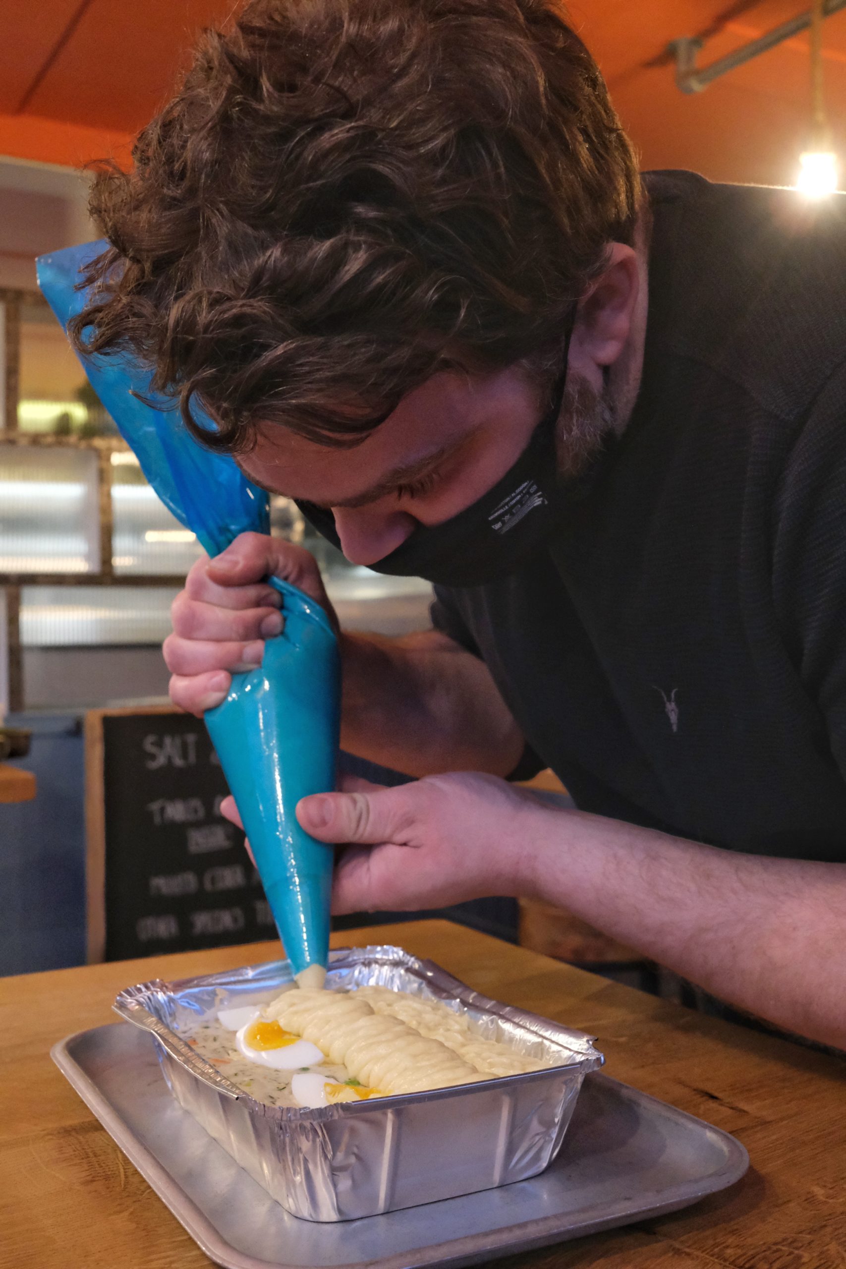 Josh Eggleton makes a fish pie at Salt & Malt. Photo: Plaster