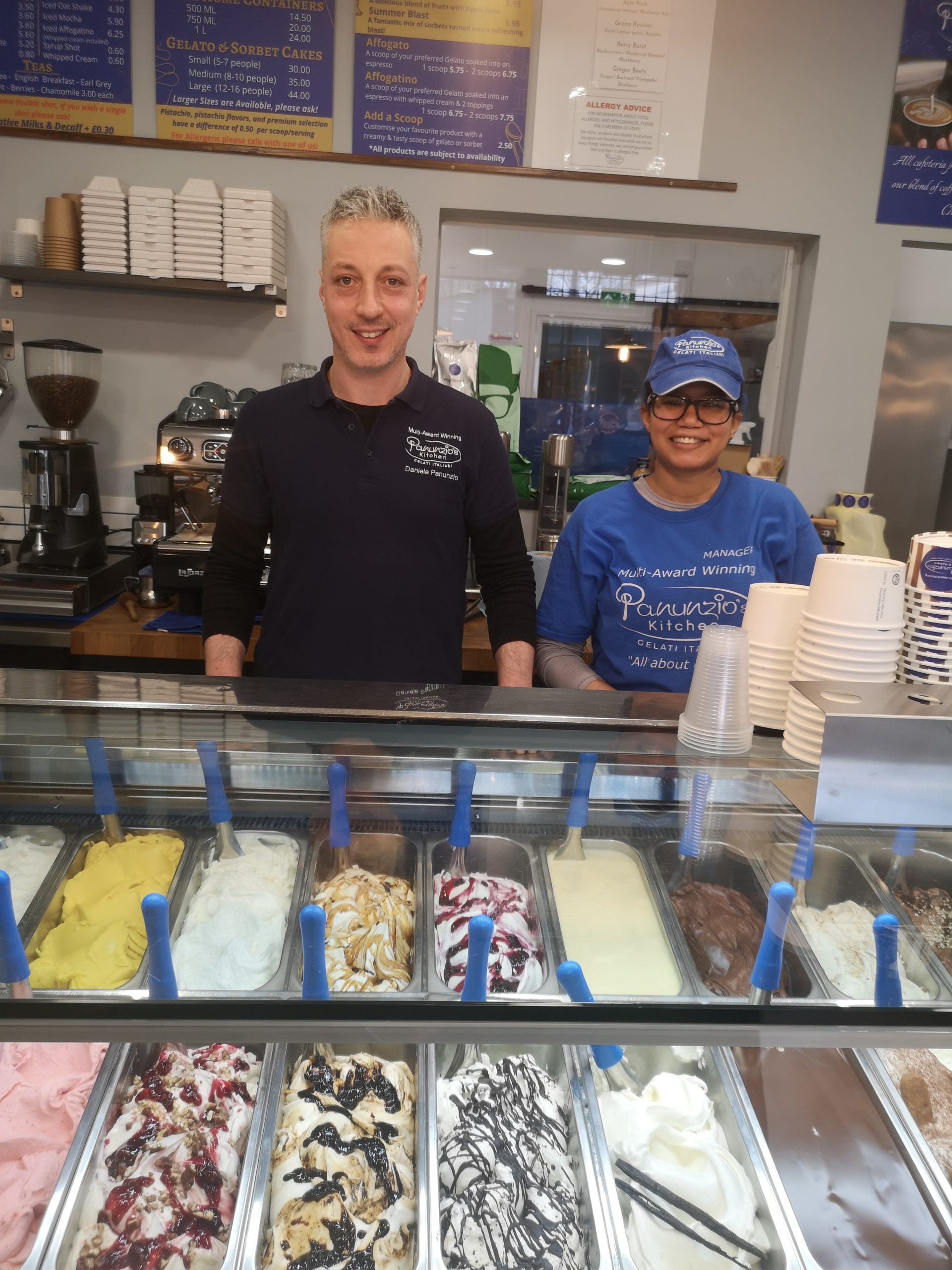 After the pandemic, it was now or never for the couple. In June 2022, Daniele and Thary opened Panunzio’s Kitchen Gelati Italiani. The unusually warm summer proved to be a blessing for the fledgling business, generating buzz about the new gelato shop in town. This led to long queues snaking down Cotham Hill.