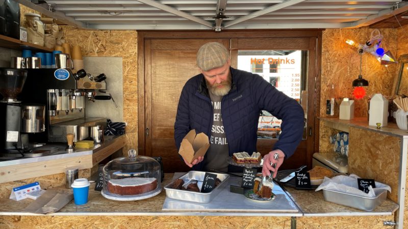 On Saturday, cakes and sweet treats on the counter included a carrot cake, brownies and flapjacks.