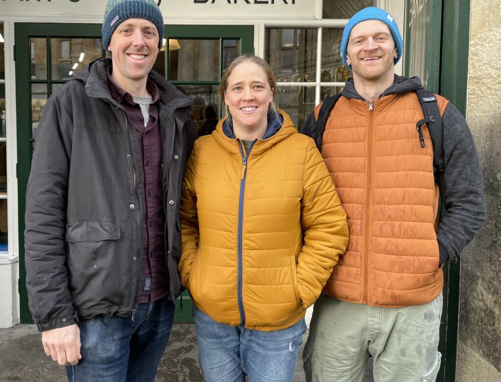 Laura Hart alongside her husband and business partner Pete Young (left) and Hart’s Bakery head baker George Roberts – photo: Martin Booth