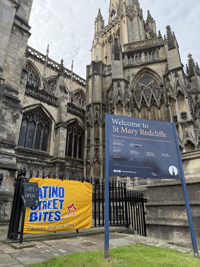 Latino Street Bites within the undercroft at St Mary Redcliffe is accessed down a small flight of stone steps to the left of the main entrance – photo: Martin Booth