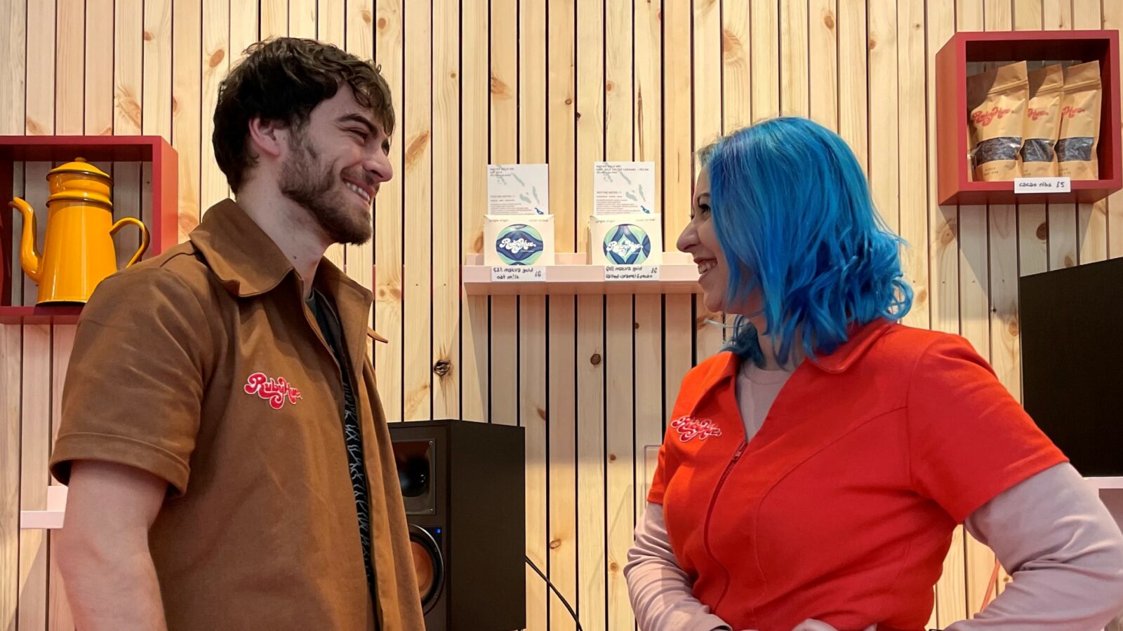 The new cafe and ‘chocolate bar’ is now open in Finzels Reach, with co-owners Ruth Scanlon and Tom Hughes wearing bespoke clothes made by Tom’s mum, Liz, who is also the in-house barista.