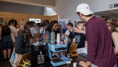 He serves coffee from Clifton Coffee and cakes made by his wife, Kat, which on Wednesday in only his second week in business included lemon drizzle, sticky toffee loaf and shortbread.