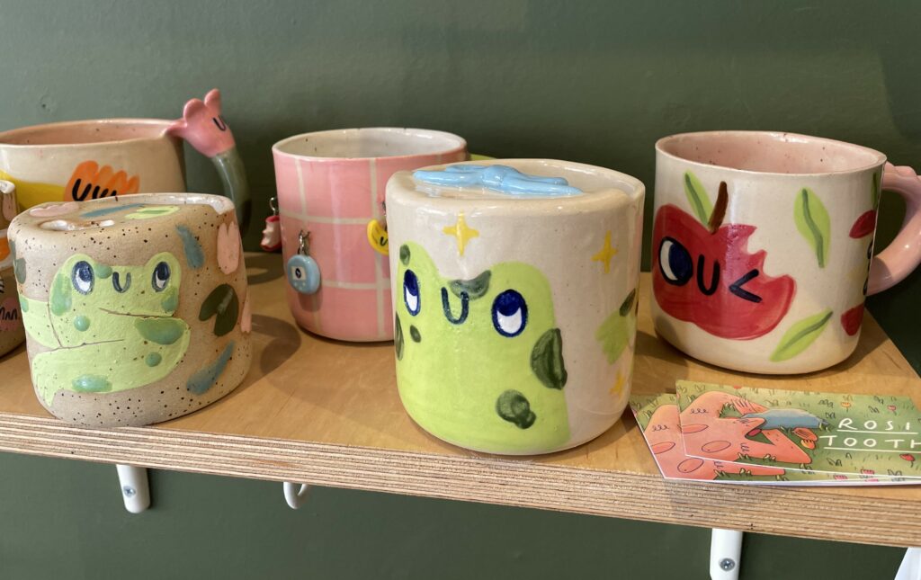 A number of her handcrafted mugs and sippy cups are also currently for sale.
