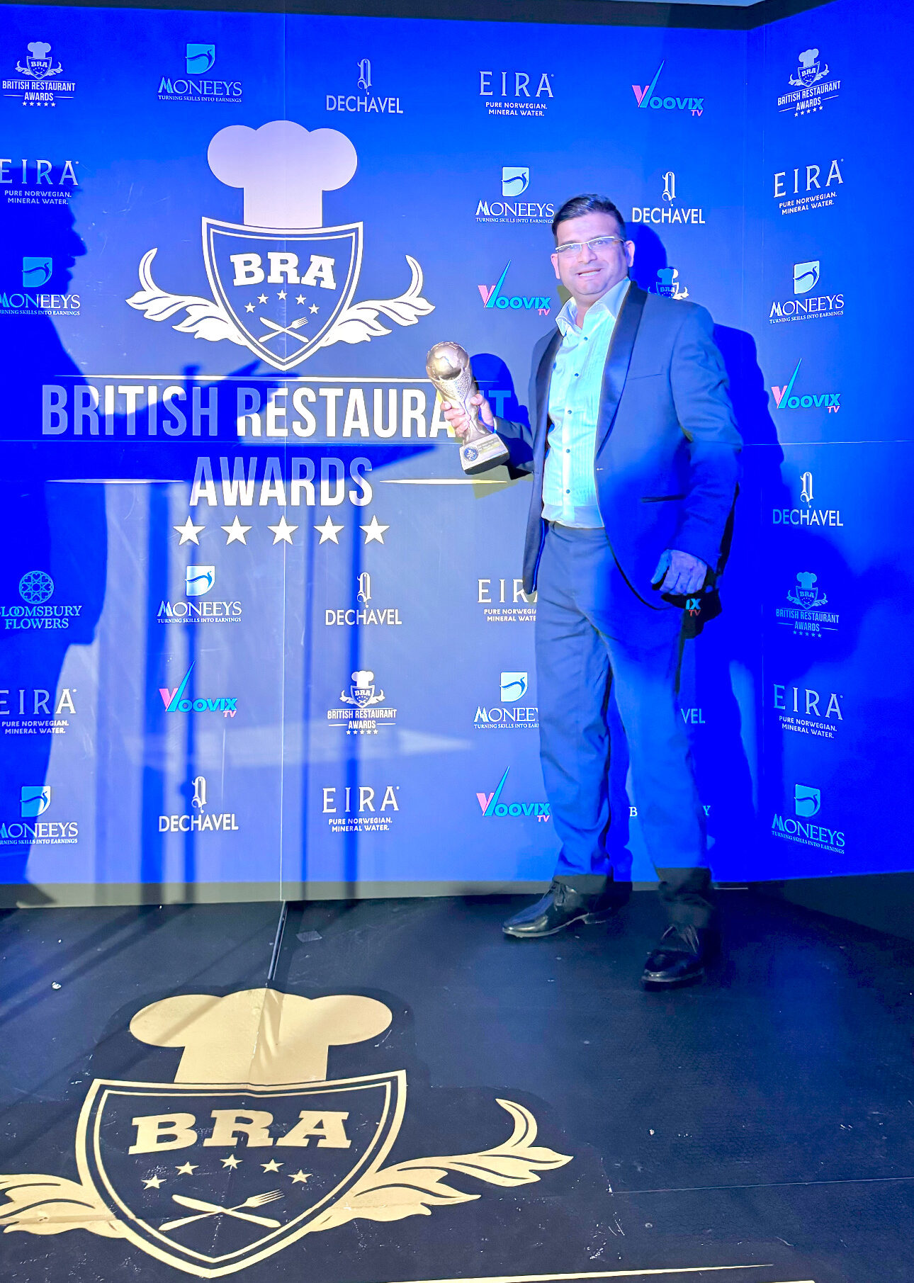 Namak owner and head chef Harris Massey celebrates at the British Restaurant Awards – photo: Namak